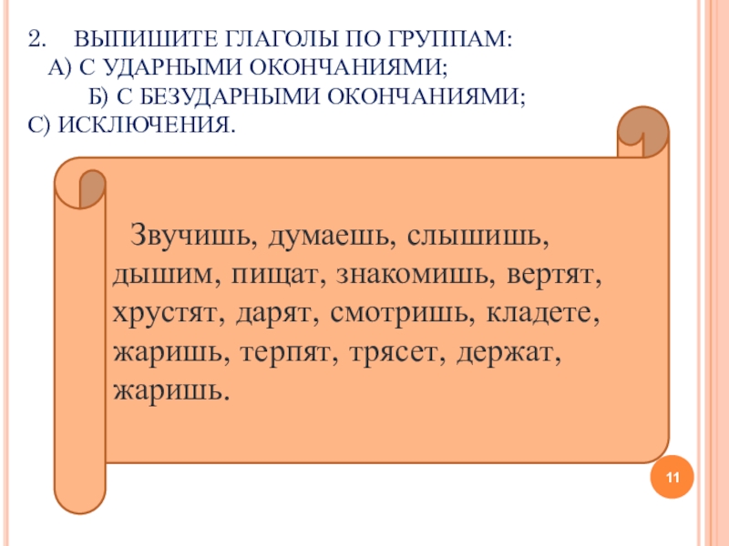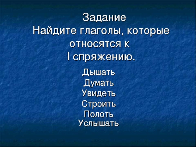 - если этот глагол - исключение (слышать, дышать, держать, гнать, видеть, обидеть, смотреть, зависеть, вертеть, терпеть, ненавидеть), то он –2 спряжения.