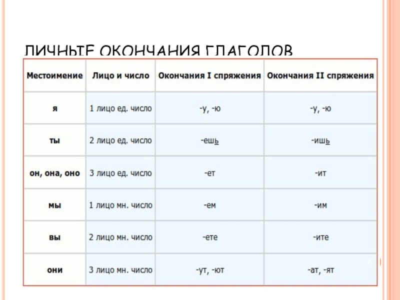 5. Смотрим в таблицу и выбираем нужное личное окончание.