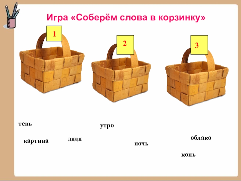 Игра «Соберём слова в корзинку»картинаутроночьоблако теньконьдядя 1 23