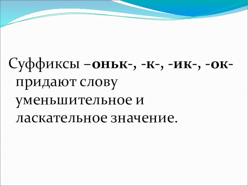 Слайд 8Суффиксы –оньк-, -к-, -ик-, -ок- придают слову уменьшительное и ласкательное значение.