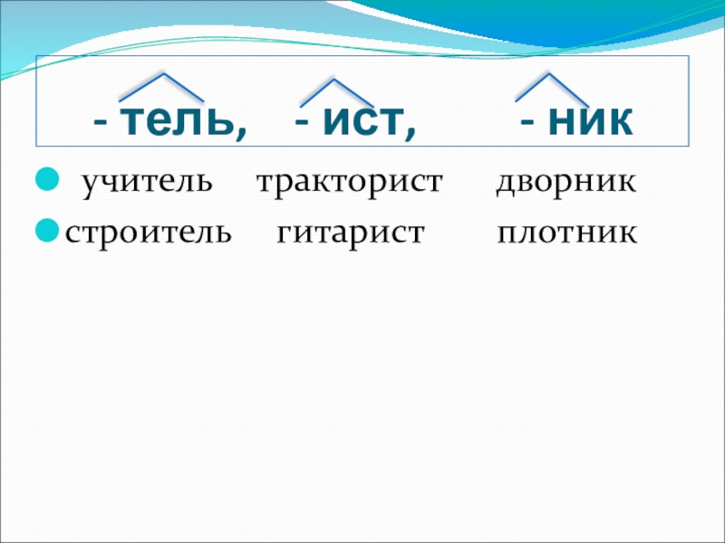 - тель,  - ист,     - ник учитель