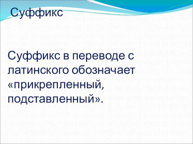 Суффикс    Суффикс в переводе с латинского обозначает «прикрепленный,