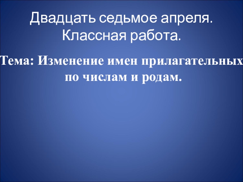 Двадцать седьмое апреля.Классная работа.Тема: Изменение имен прилагательных по числам и родам.
