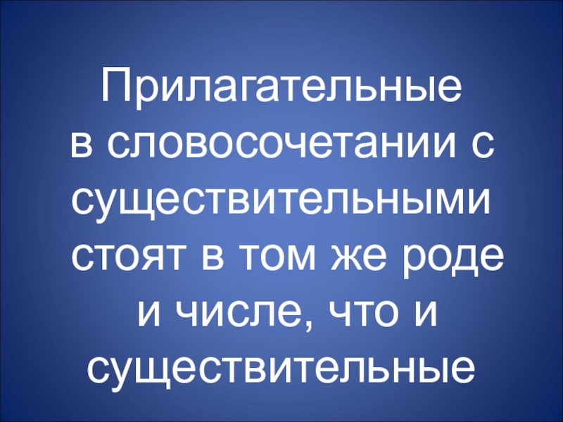 Прилагательные в словосочетании с существительными стоят в том же роде и числе, что и существительные