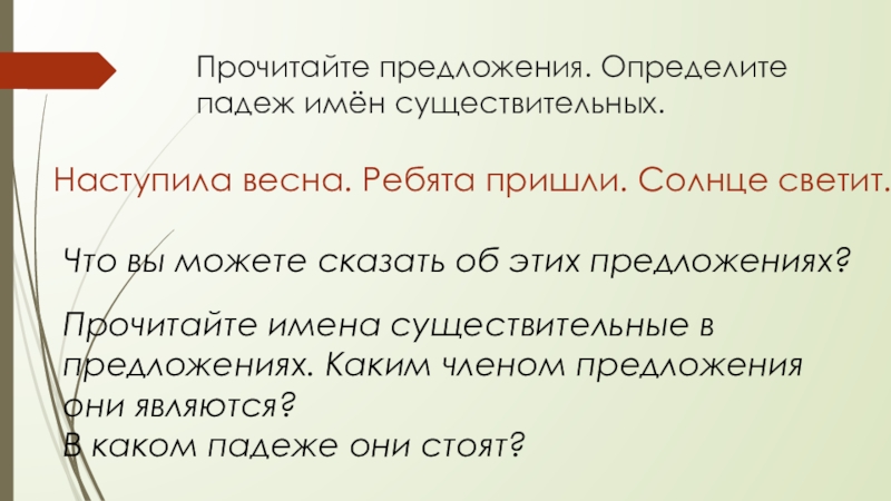 Прочитайте имена существительные в предложениях. Каким членом предложения они являются?