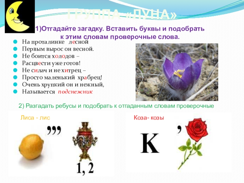 2) Разгадать ребусы и подобрать к отгаданным словам проверочные слова.