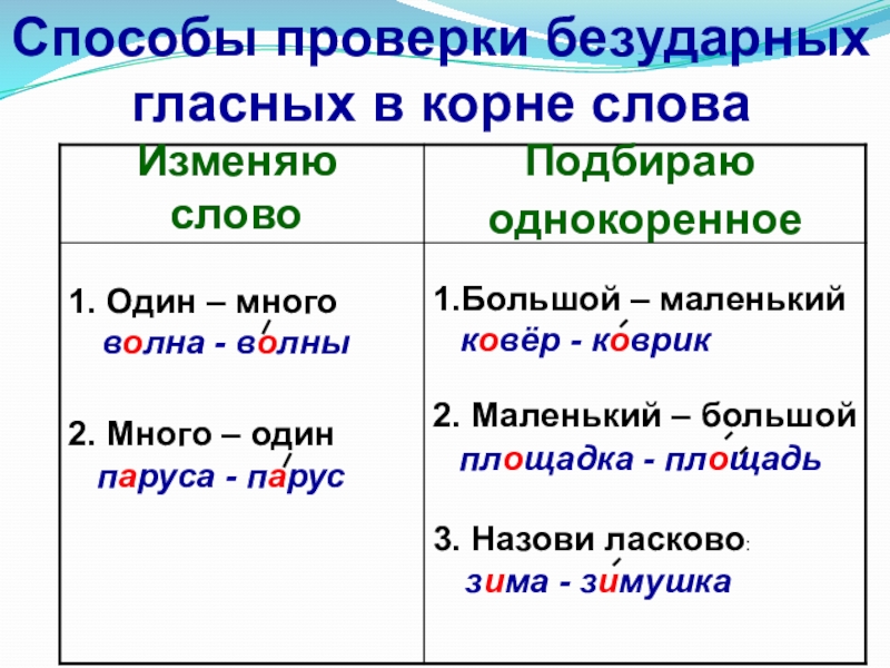 к этим словам проверочные слова.