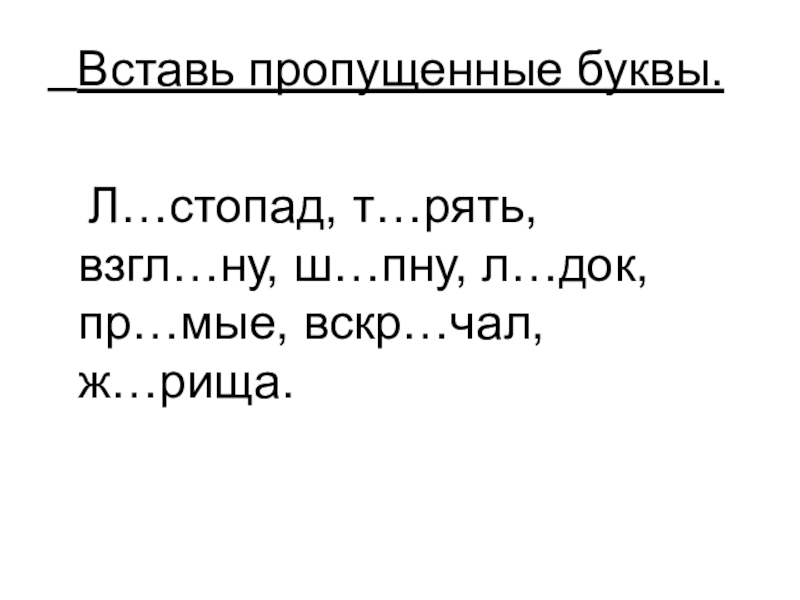 Слайд 5 Вставь пропущенные буквы.