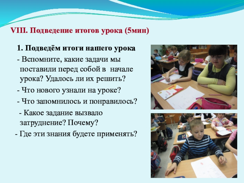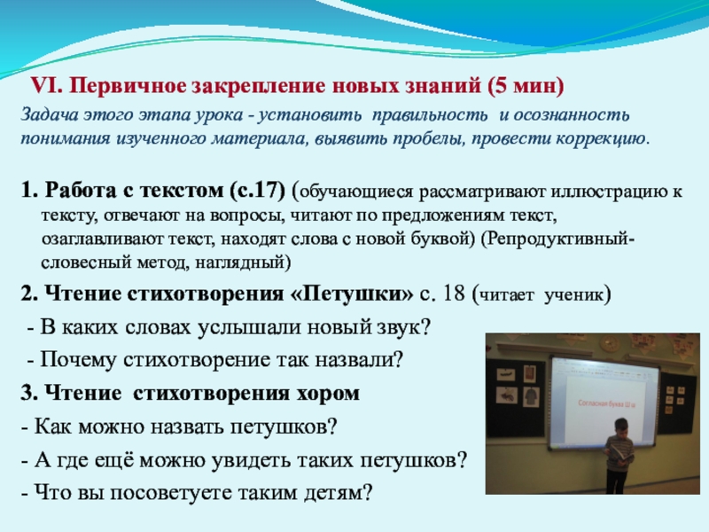 Задача этого этапа урока - установить правильность и осознанность понимания изученного материала, выявить пробелы, провести коррекцию.