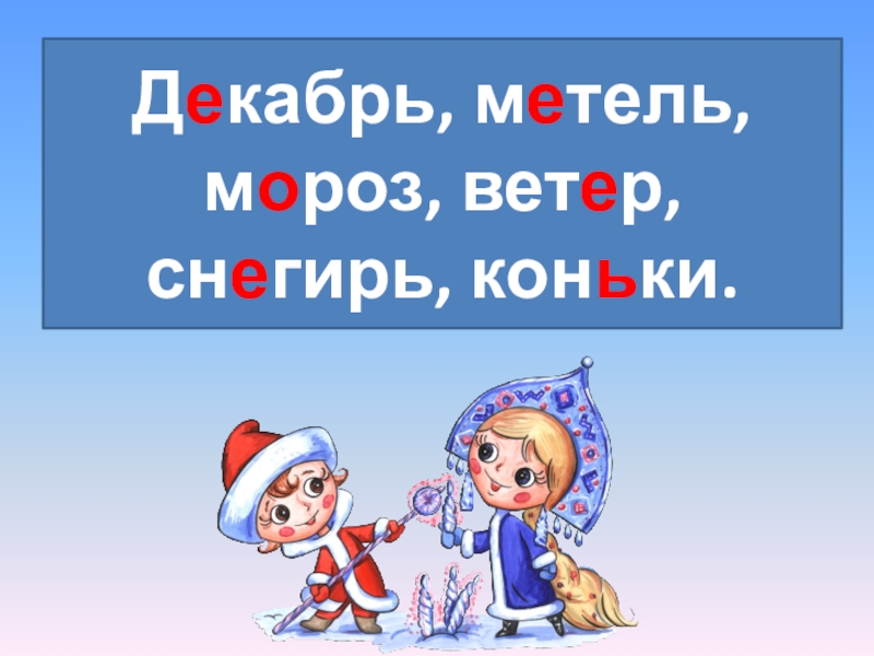 Д...кабрь, м…тель, м…роз, вет…р, сн…гирь.ееоее