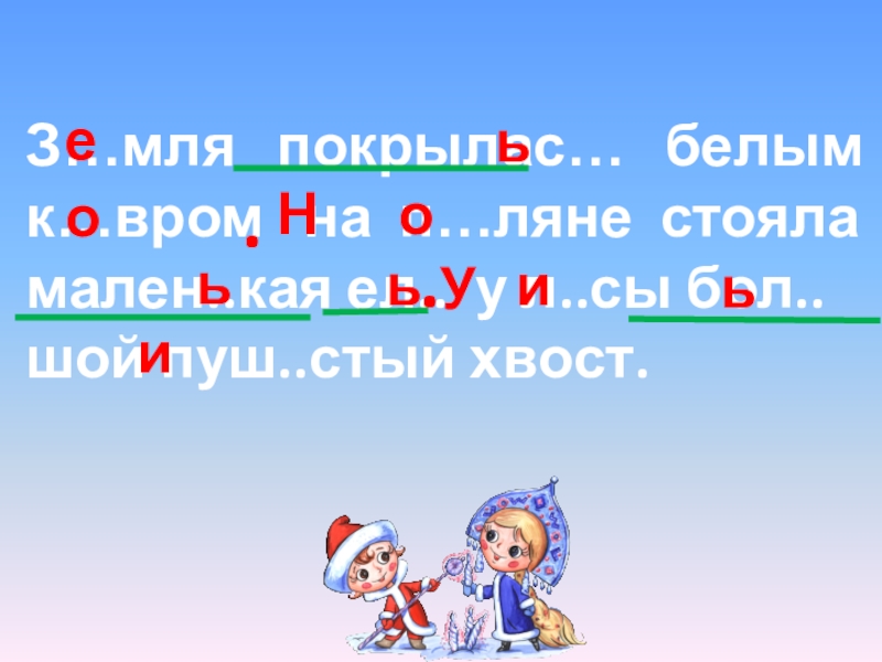 Слайд 34З…мля покрылас… белым к…вром на п…ляне стояла