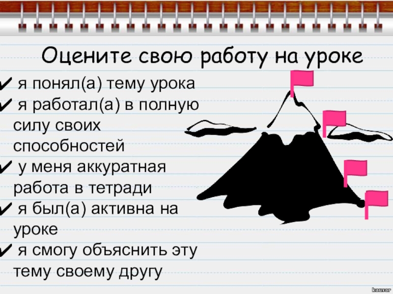 Оцените свою работу на уроке я понял(а) тему урока я работал(а) в полную силу своих способностей у