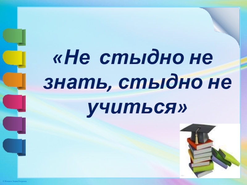 Слайд 2«Не стыдно не знать, стыдно не учиться»