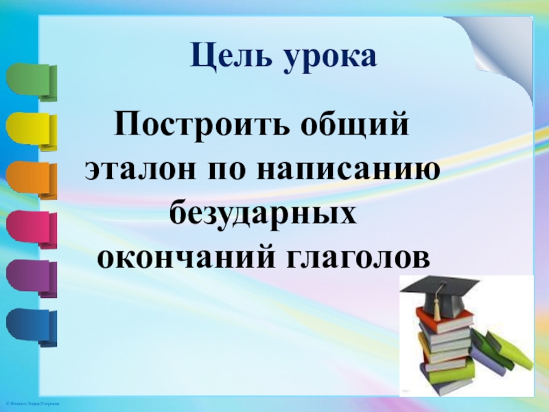 Цель урока  Построить общий эталон по написанию безударных окончаний глаголов