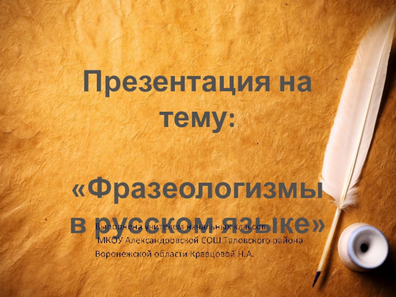 Презентация, доклад по русскому языку на тему Фразеологизмы в русском языке (4 класс)