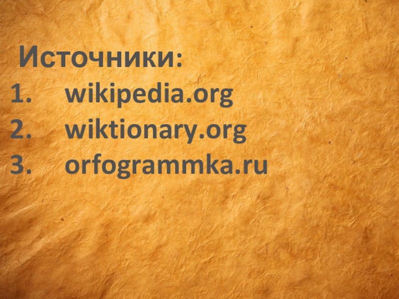 Источники: wikipedia.org wiktionary.org orfogrammka.ru