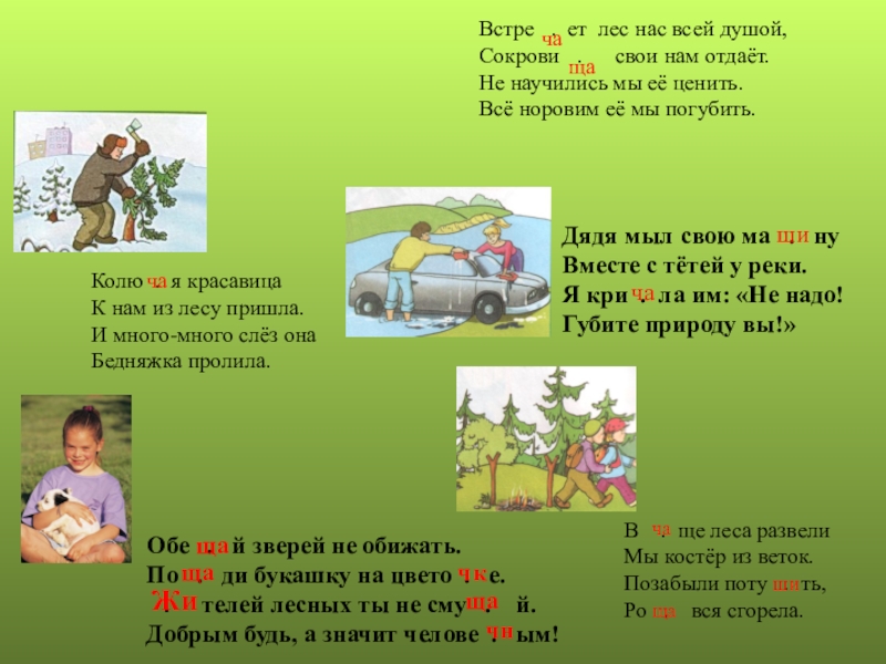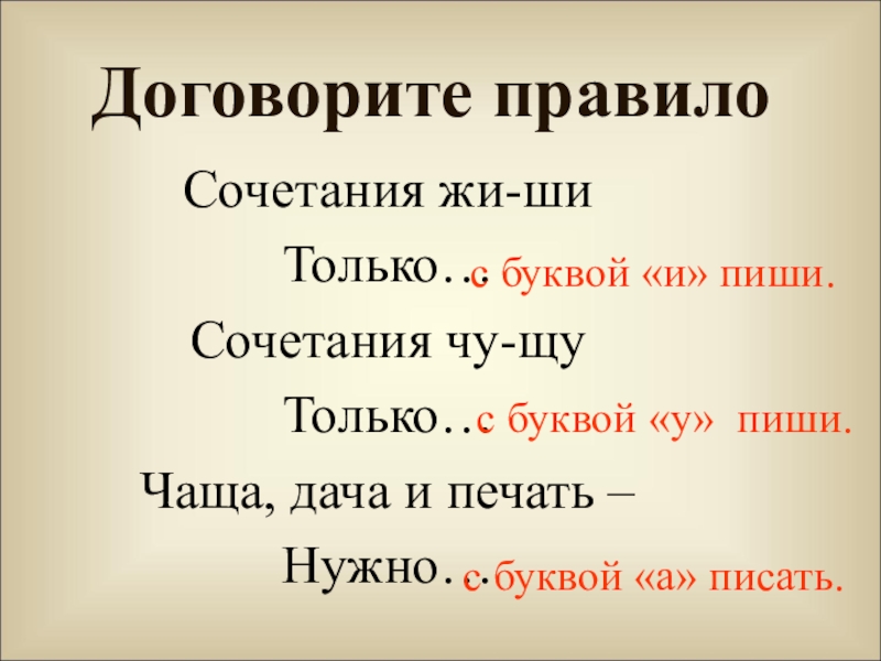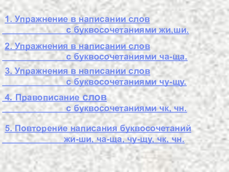 жи-ши, ча-ща, чу-щу, чк, чн.