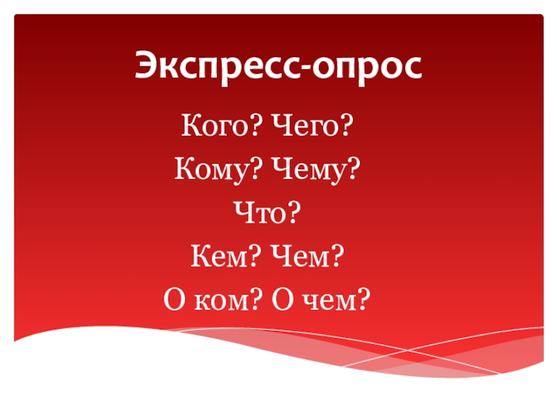 Экспресс-опросКого? Чего? Кому? Чему?Что?Кем? Чем?О ком? О чем?