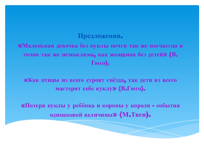 Слайд 10Предложения. «Маленькая девочка без куклы почти так же несчастна и точно так же