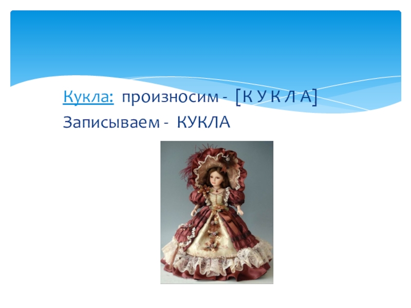 Кукла: произносим - [К У К Л А]Записываем - КУКЛА