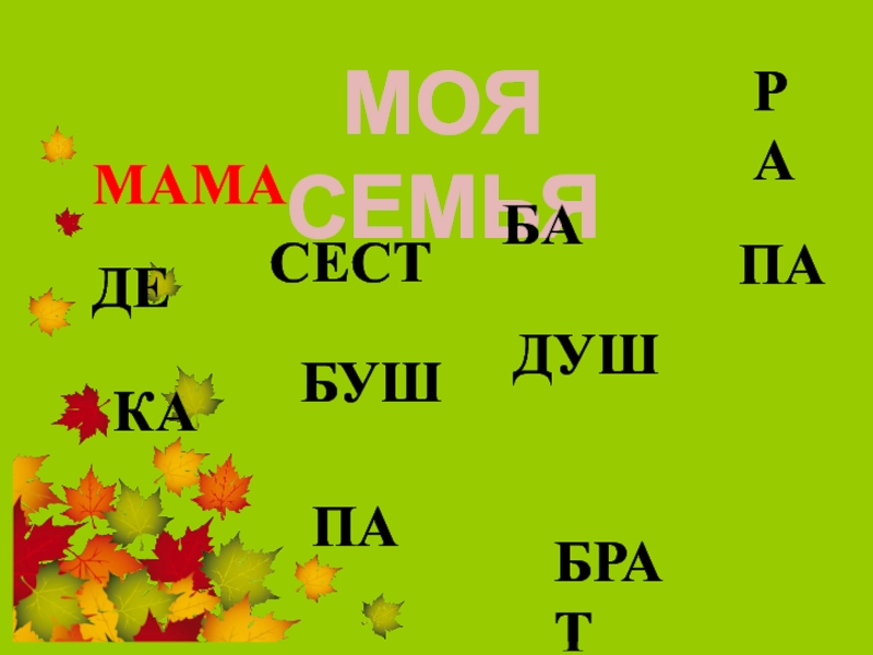 МОЯ СЕМЬЯМАДЕКАСЕСТБУШПАБАДУШБРАТРАПАМА