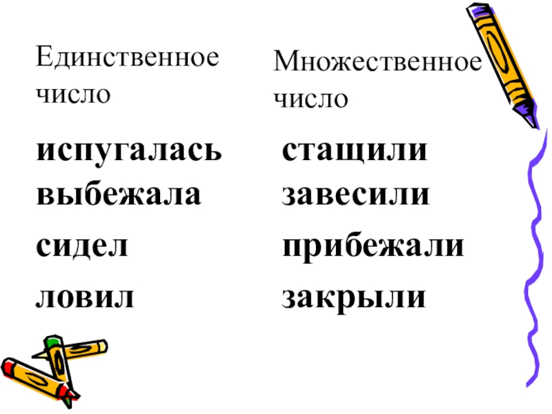 испугалась выбежаласидел ловилЕдинственное числоМножественное числостащили завесилиприбежализакрыли