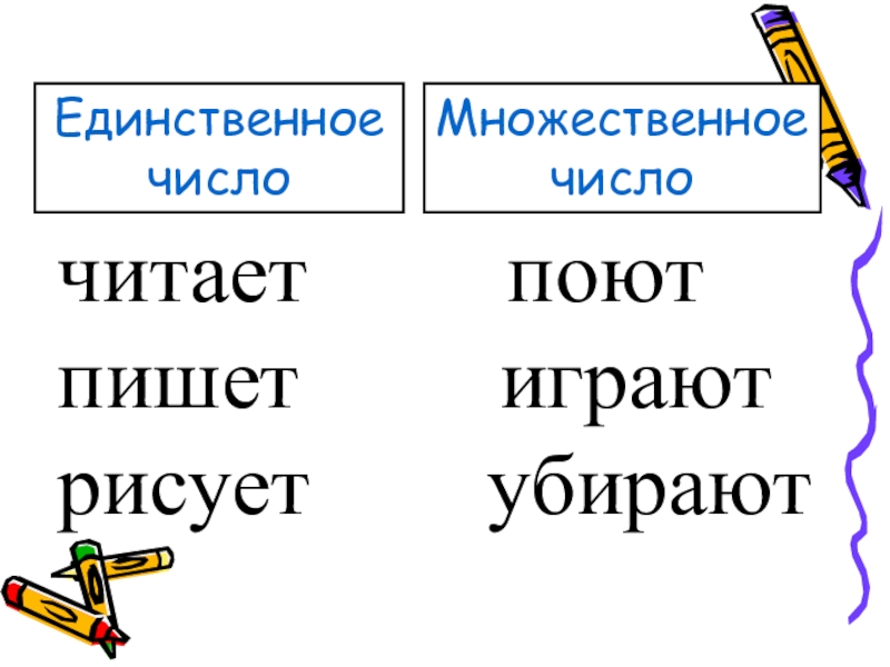 Презентация, доклад по русскому языку на тему Единственное и множественное число глаголов (2 класс)