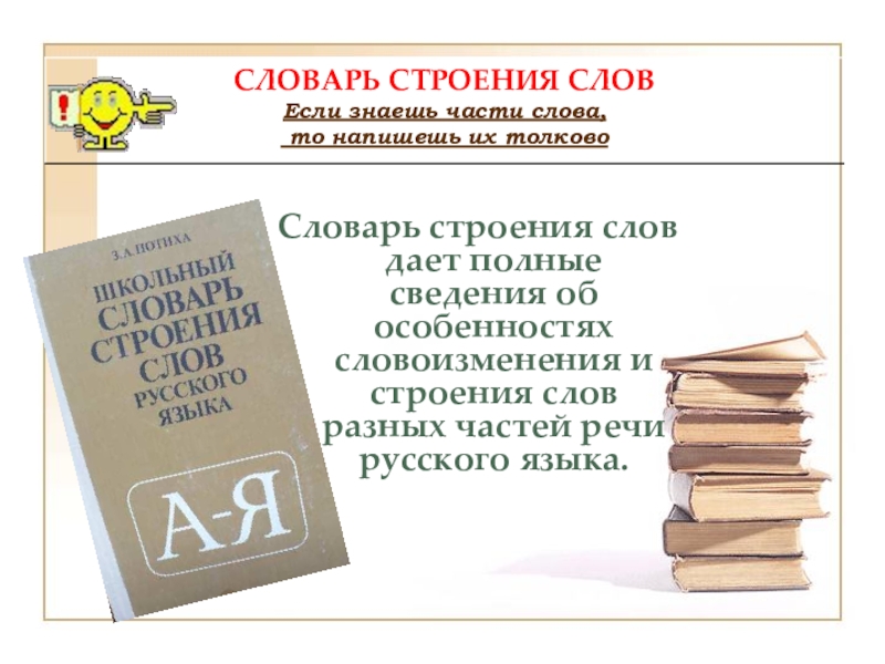 Словарь строения слов дает полные сведения об особенностях словоизменения и строения