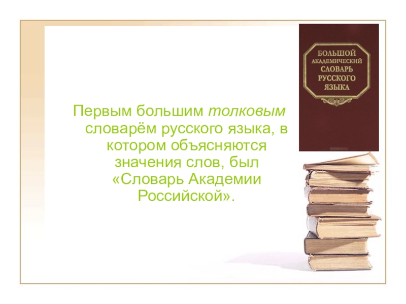 Первым большим толковым словарём русского языка, в котором объясняются значения слов,