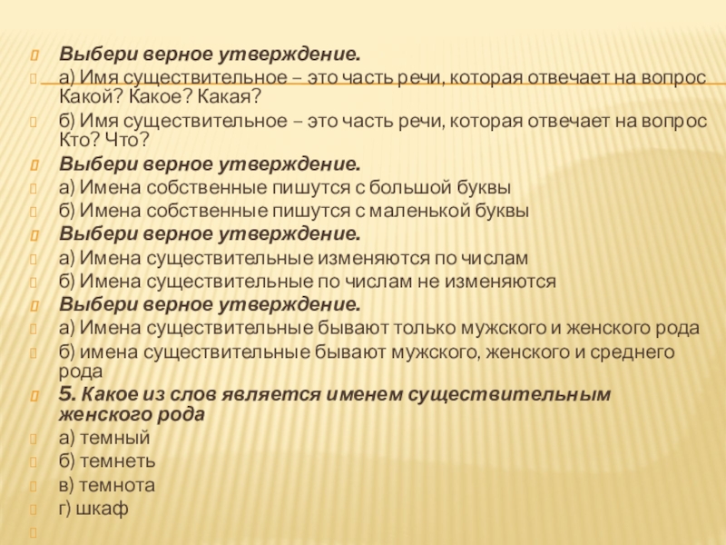 Выбери верное утверждение.а) Имя существительное – это часть речи, которая отвечает на вопрос Какой? Какое? Какая?б) Имя