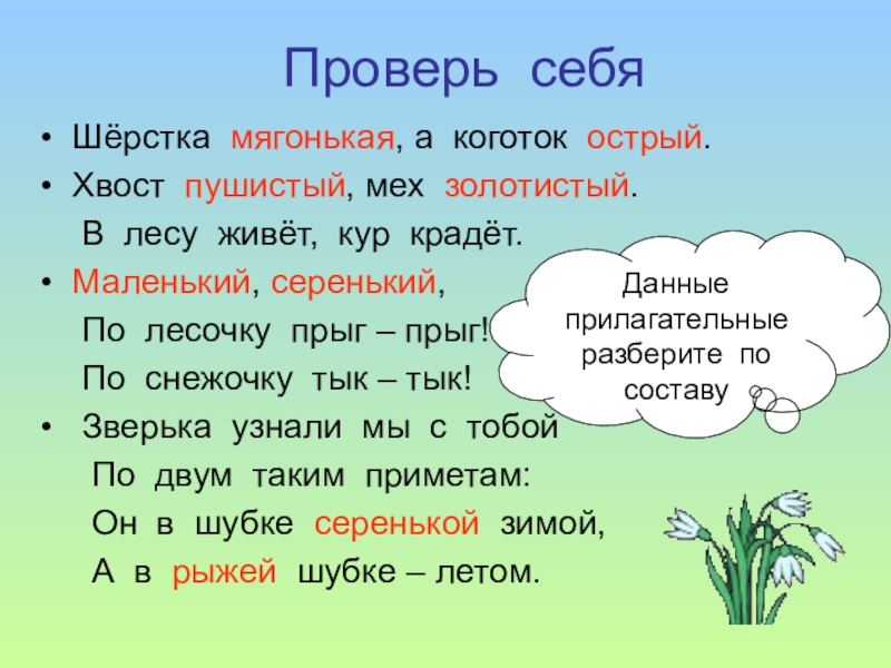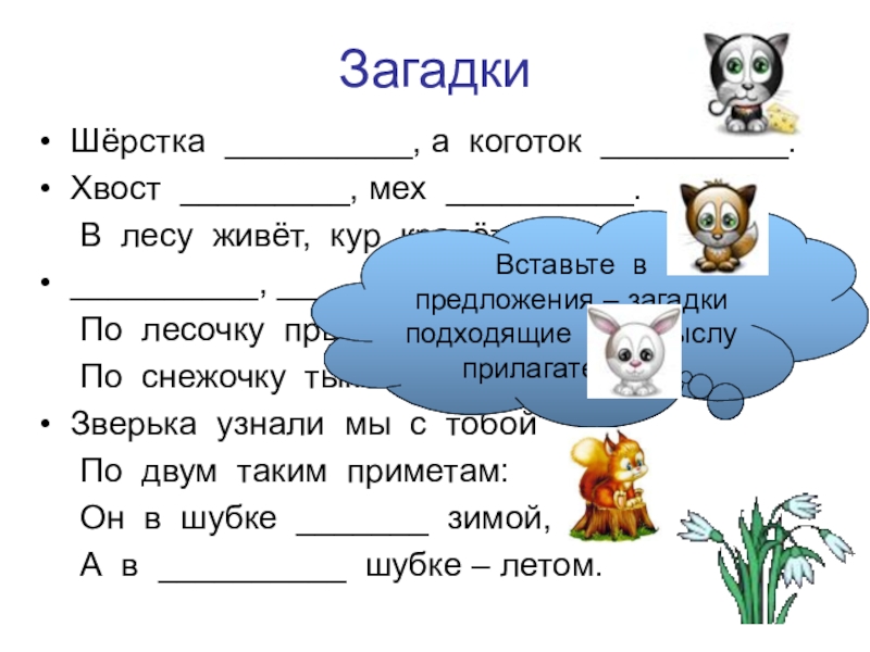 Вставьте в предложения – загадки подходящие по смыслу прилагательные