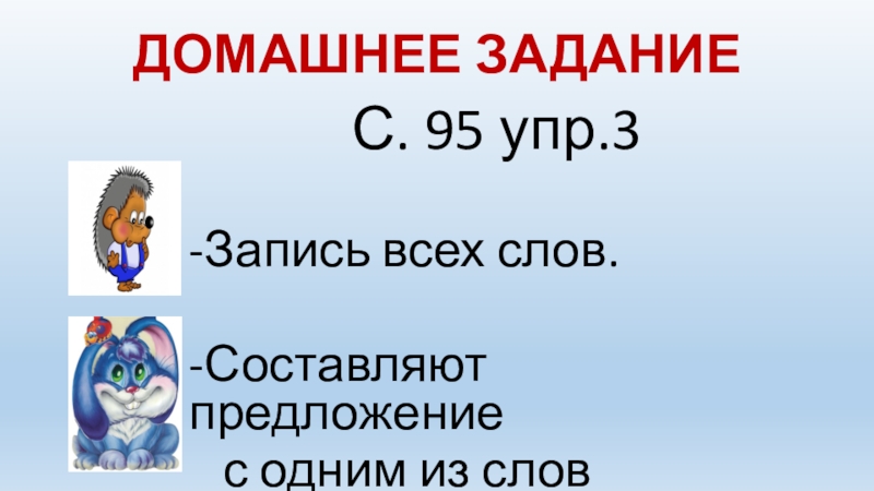 ДОМАШНЕЕ ЗАДАНИЕС. 95 упр.3-Запись всех слов.-Составляют предложение  с одним из слов