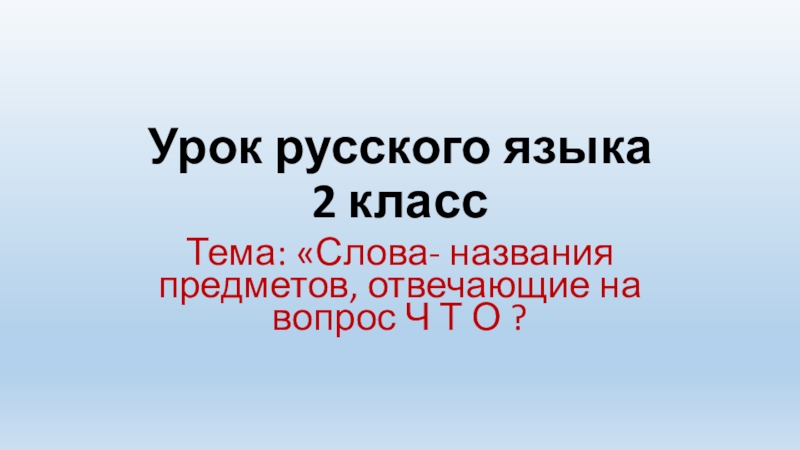 Урок русского языка 2 классТема: «Слова- названия предметов, отвечающие на вопрос Ч Т О ?