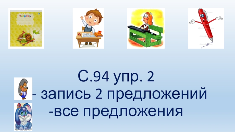 Слайд 12С.94 упр. 2 - запись 2 предложений -все предложения