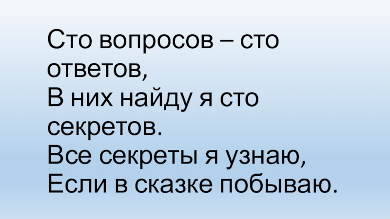 Слайд 3Сто вопросов – сто ответов, В них найду я сто секретов. Все секреты