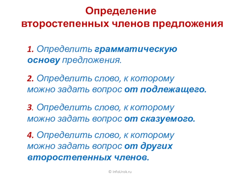 второстепенных членов предложения