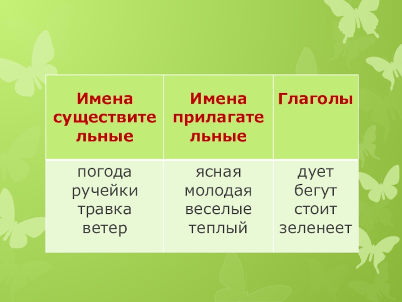 Имя существительноеГлаголИмя прилагательноеЧасти речи
