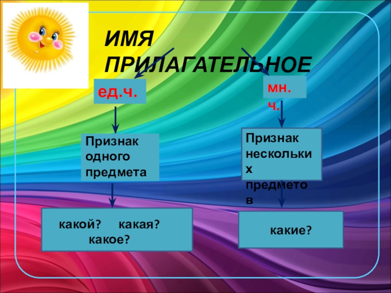 ИМЯ ПРИЛАГАТЕЛЬНОЕед.ч.Признакодногопредметакакой?   какая?   какое?мн.ч.Признакнесколькихпредметовкакие?