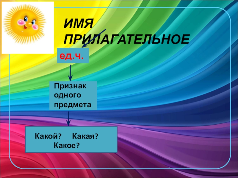 ИМЯ ПРИЛАГАТЕЛЬНОЕед.ч.ПризнакодногопредметаКакой?   Какая?   Какое?