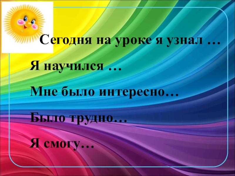 Сегодня на уроке я узнал …	 Я научился …	 Мне было