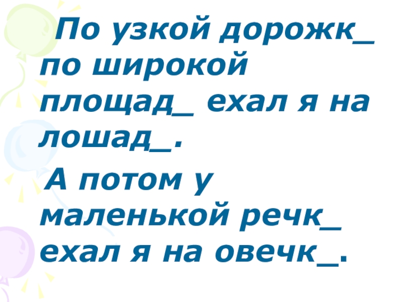 По узкой дорожк_ по широкой площад_ ехал я на лошад_.  А потом у маленькой