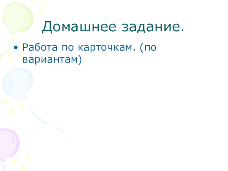 Домашнее задание.Работа по карточкам. (по вариантам)
