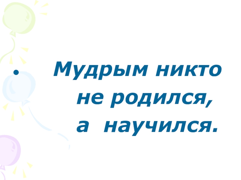 Мудрым никто     не родился,     а
