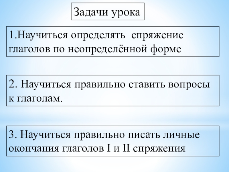 1.Научиться определять спряжение глаголов по неопределённой форме