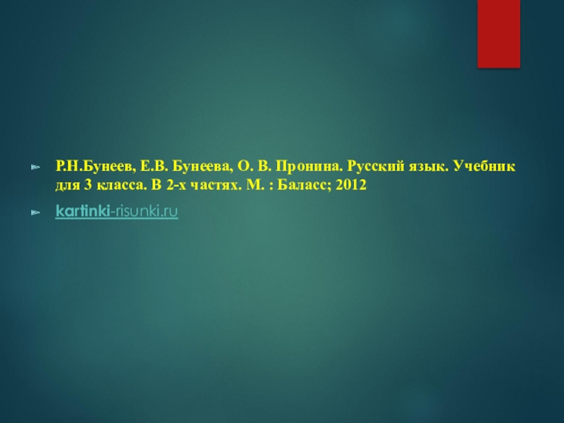 Слайд 8Р.Н.Бунеев, Е.В. Бунеева, О. В. Пронина. Русский язык. Учебник для 3