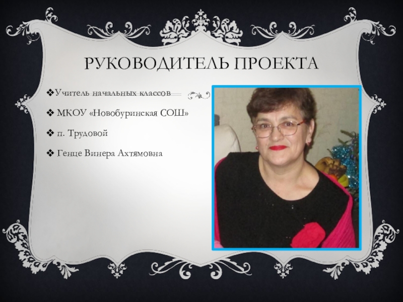 Руководитель проектаУчитель начальных классов МКОУ «Новобуринская СОШ» п. Трудовой Генце Винера Ахтямовна