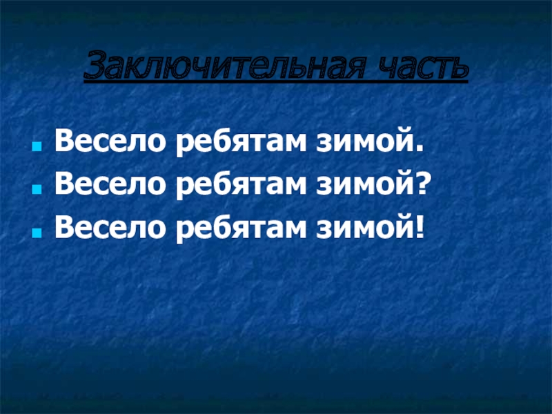 Заключительная частьВесело ребятам зимой.Весело ребятам зимой?Весело ребятам зимой!