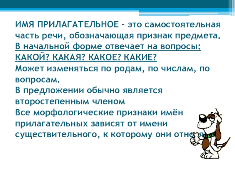 Все морфологические признаки имён прилагательных зависят от имени существительного, к которому они относятся.