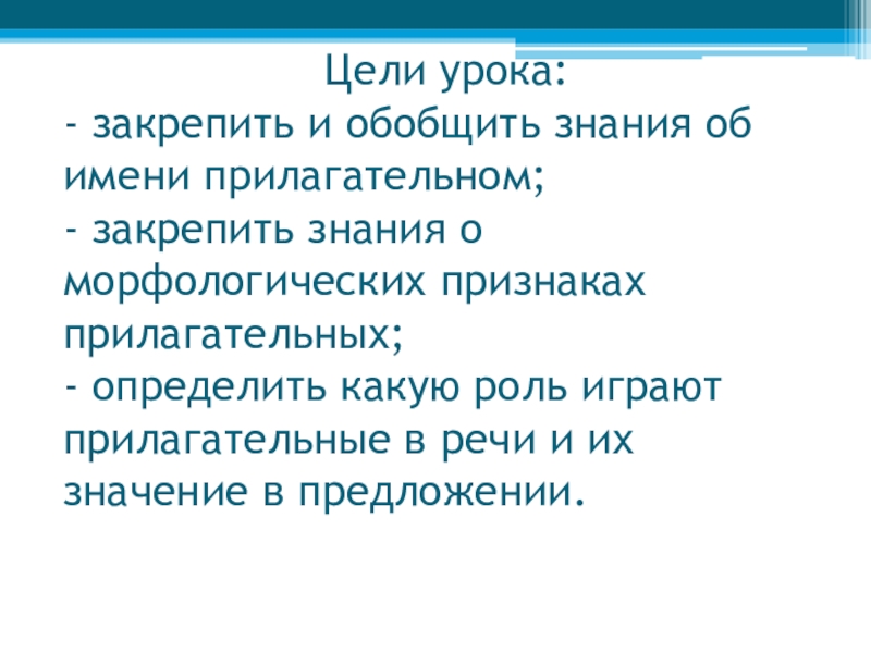 - определить какую роль играют прилагательные в речи и их значение в предложении.