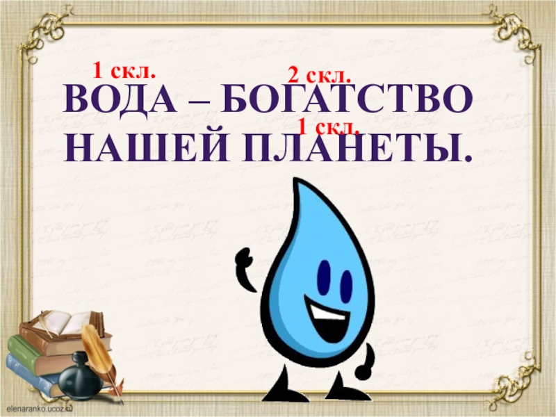 Вода – богатство нашей планеты.1 скл.2 скл.1 скл.